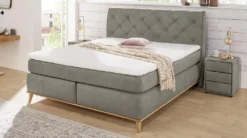 Boxspringbett 180 X 200 Cm Grau Microfaser Mit 6 Cm Topper – HERMINE – MIX – Die Möbelfundgrube
