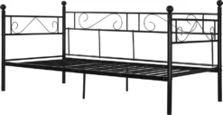[en.casa] Tagesbett 90×200 Schwarz Metallbett Bett Daybed Bettsofa Kojenbett Jugendbett Gästebett