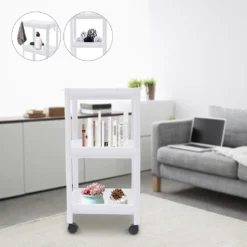 1x SIDEBOARD WEIß Auf Rollen Aus Holz, 4 Fächer / NEU / 100x30x50 Cm / TV Bank, Wohnzimmerregal