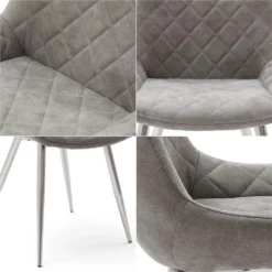 2er Set Sessel Roberta – Mikrofaser Vintage Grau – Metallgestell Schwarz – Gepolsterte Armlehne