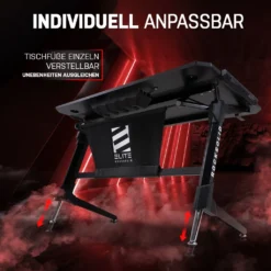 ELITE Gaming-Tisch Rocksolid Gamer-Schreibtisch Computertisch Carbon-Optik + LED (Schwarz)