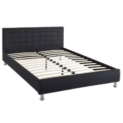 Polsterbett Doppelbett CLAIRE 140 X 200 Cm Anthrazit Grau, Inklusive Lattenrost, Mit Stoffbezug