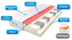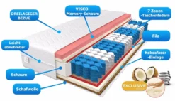 Matratze 180 X 200 MEMORY DUO Höhe 27 Cm 7 Zonen Visco Memory Taschenfederkern H2 Und H3