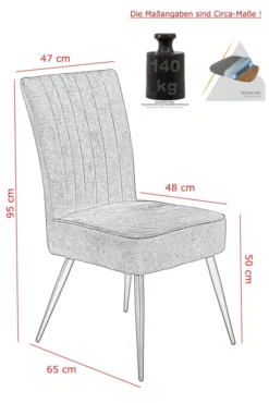 2er Set Esszimmerstuhl Pia-Bezug Microfaser Anthrazit-Metallgestell Vierkantrohr-42cm Breit