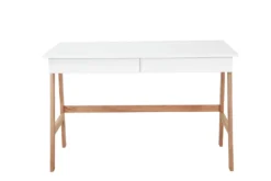 Möbilia Schreibtisch | 2 Schubladen | Tischplatte MDF Weiß Matt | Gestell Holz Natur | B 120 X T 60 X H 77 Cm | 28020025 | Serie SCHREIBTISCH