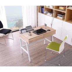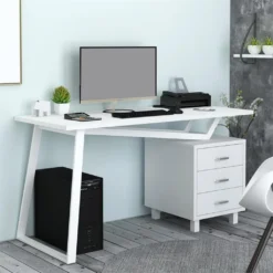 SixBros. Computerschreibtisch Mit Viel Stauraum, 3 Schubladen, Schreibtisch In Weiß, CT-3533/2181