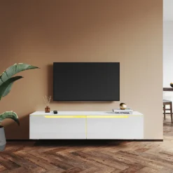 SONNI TV-Schränke Weiß Hochglanz Hängend Mit Led 140 X 35 X 30cm