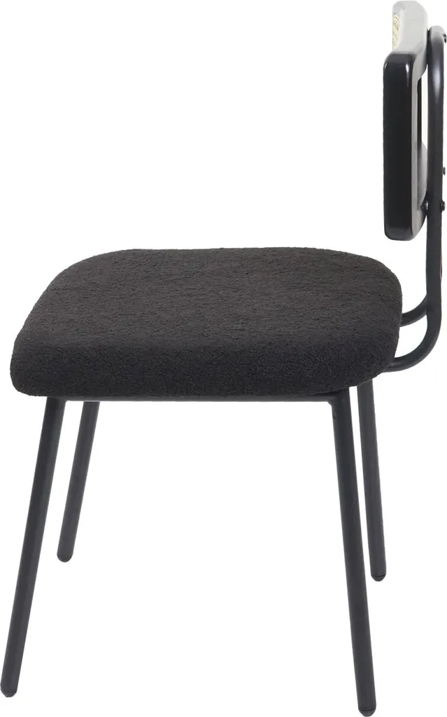 – Dieser Wohnzimmerstuhl zeichnet sich durch seinen schicken Retro-Look aus und ist in jedem Raum ein echter Hingucker. Die Materialkombination aus Geflecht und dem Bouclé Bezug runden die Optik des Polsterstuhls bestens ab und lassen ihn edel aussehen.