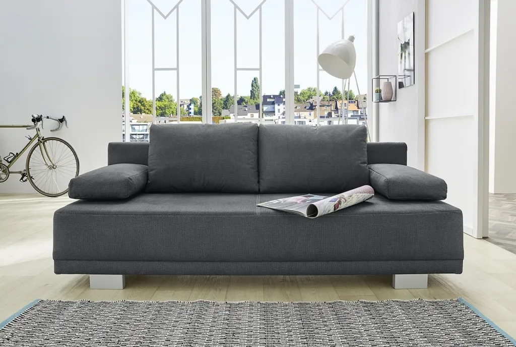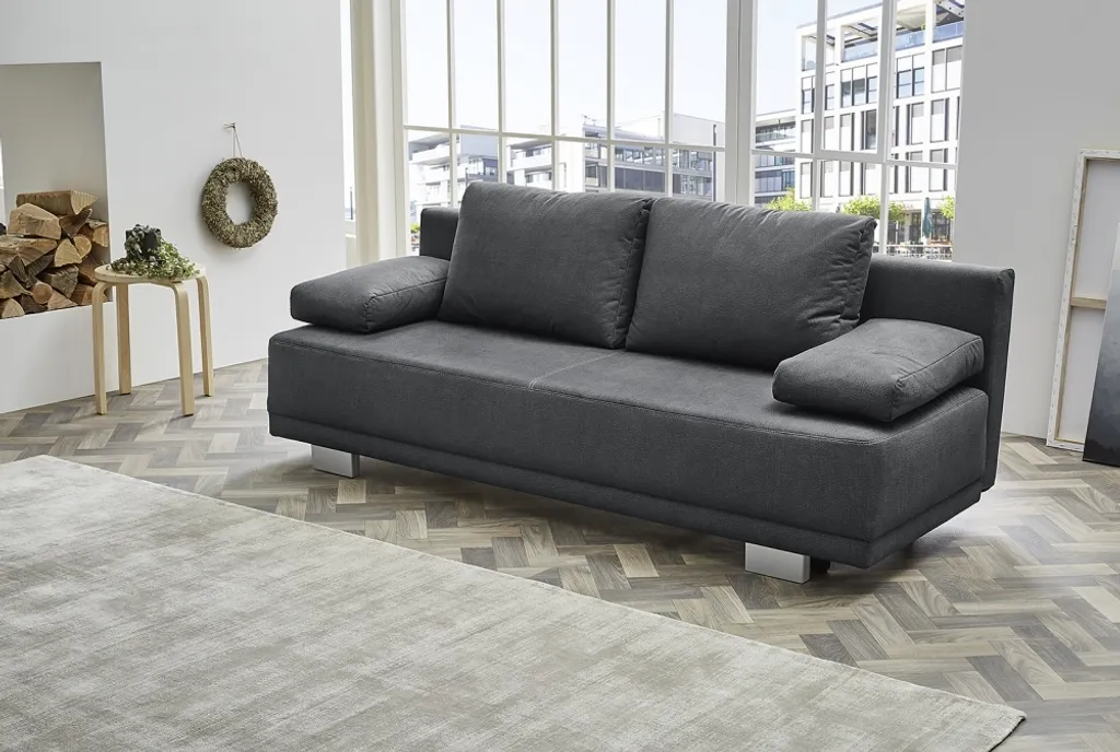 Hochwertiges Schlafsofa als Querschläfer in anthrazit dunkel grau Microfaser.