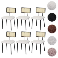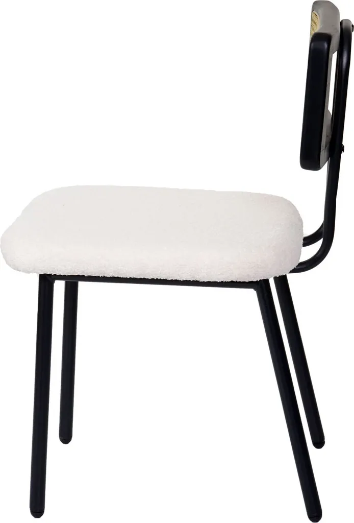 – Dieser Wohnzimmerstuhl zeichnet sich durch seinen schicken Retro-Look aus und ist in jedem Raum ein echter Hingucker. Die Materialkombination aus Geflecht und dem Bouclé Bezug runden die Optik des Polsterstuhls bestens ab und lassen ihn edel aussehen.