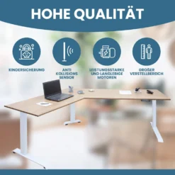 - NÜTZLICHE FEATURES: Das Winkeltisch-Gestell besitzt ein Digitaldisplay + Speicherfunktion von 3 Höhen. Außerdem verbaut: Anti-Kollisionssensor und Kindersicherung.