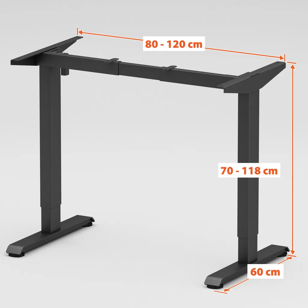 - ABMESSUNGEN & TECHNIK: Höhenverstellbar: von 70cm bis zu 118cm. Breite verstellbar: 80cm bis 120cm. Empfohlene Maße Tischplatte: Breite 80cm bis 140cm, Tiefe 70cm bis 100cm, Bis zu 80 KG belastbar.
