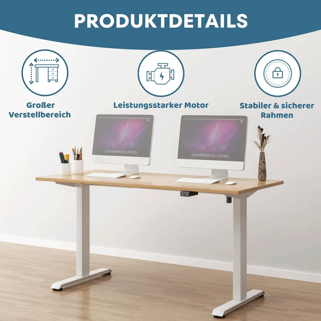- GROSSER VERSTELLBEREICH (HÖHE + BREITE): Stufenlos elektrisch höhenverstellbar von 70cm bis zu 118cm. Perfekt geeignet zum Arbeiten im Stehen auch für große und kleine Menschen oder Kinder. Verstellbare Breite zwischen 80cm bis 120cm.