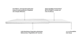 Unsere Topper werden komplett in Deutschland gefertigt. Alle verarbeiteten Materialien sind auf Schadstoffe geprüft und für Allergiker geeignet (19.0.86717 Hohenstein HTTI). Dank des 4-seitigen Reißverschlusses lässt sich der Bezug leicht abnehmen und bei 60 Grad in der Waschmaschine waschen.