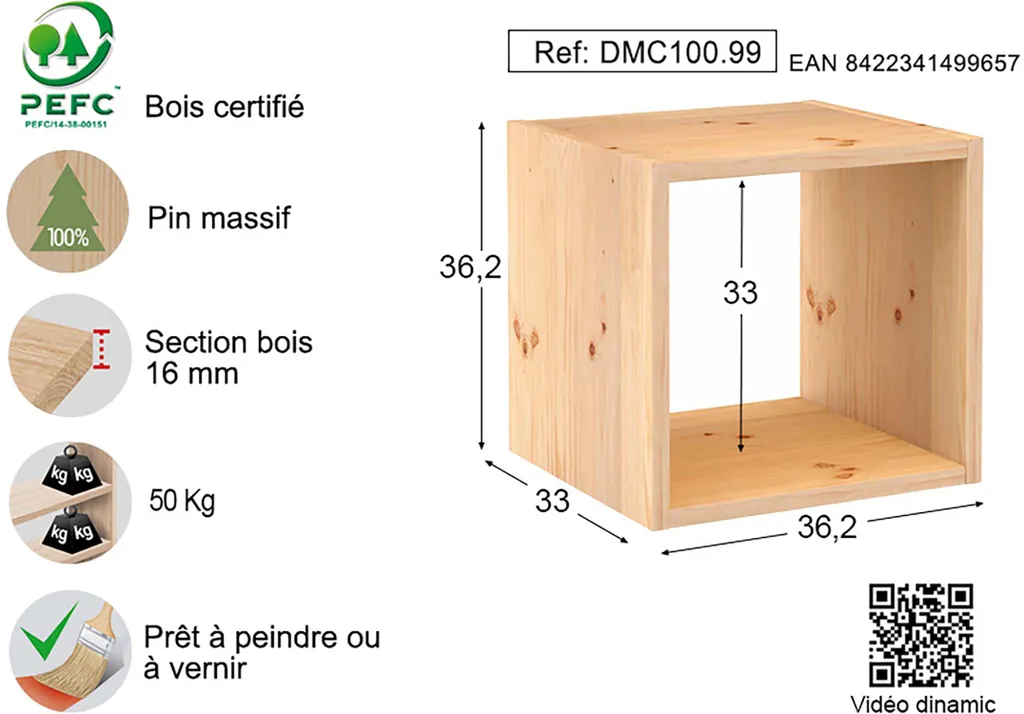 Modulares Bücherregal 1 Würfel dinamic Kiefer massiv astigarraga