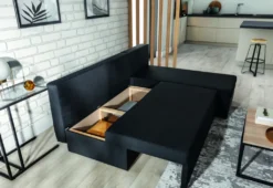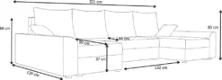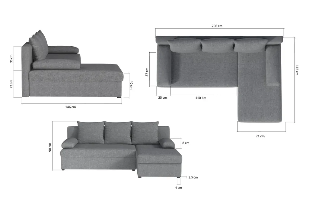 Das gemütliche und moderneSofa GEORGE passt auch in kleinere Wohnzimmer. Die Sitzfläche und die Lehne sind gefüllt mit PUR-Schaumstoff, das für einen weichen Untergrund sorgt. Zu den Vorteilen gehört die Möglichkeit, das Sofa in ein Bett zu verwandeln. Es bietet auch Stauraum für Bettwäsche. Die Ecken-Orientierung des Sofas ist universal, deshalb bestimmen Sie sie erst bei der Montage zuhause. Geben Sie sich der Gemütlichkeit beim Zusammensitzen mit der Familie, mit Freunden hin.