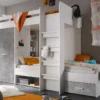 - Das Tandembett ist aus massivem Kiefernholz gefertigt und mit MDF Platten, in weiß, im Kopf- und Fußteil versehen.