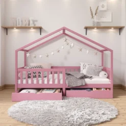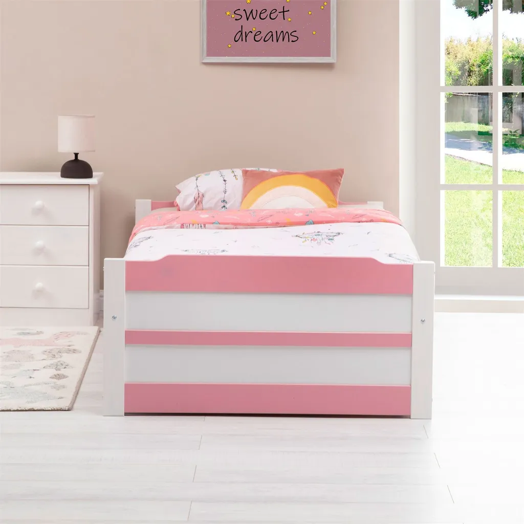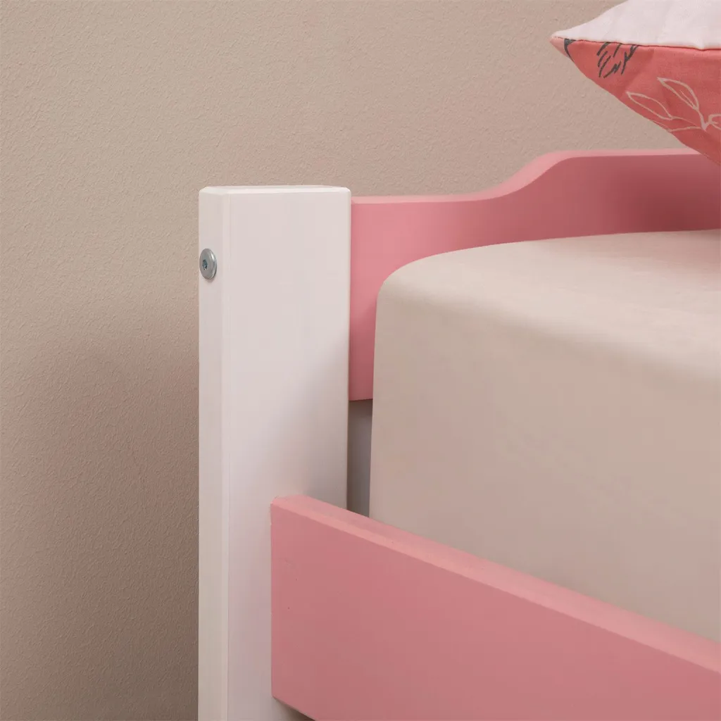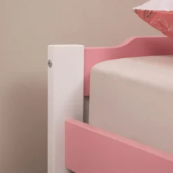- Das Bett ist weiß/rosa lackiert. Unsere verwendeten Lacke sind schadstoffarm und lösungsmittelfrei.