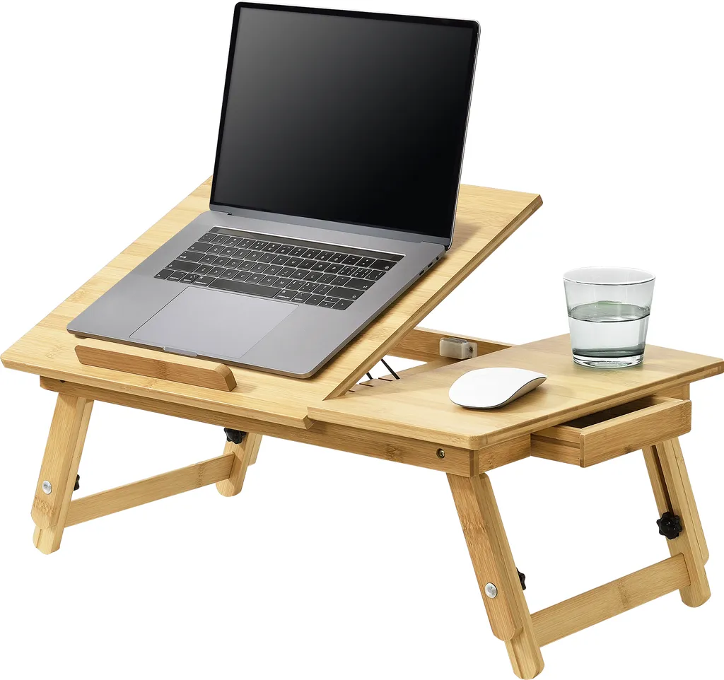 Der klappbare und höhenverstellbare Notebooktisch kann vielseitig verwendet werden. Er eignet sich perfekt als Tisch im Bett, auf dem Sofa oder als Stehpult. Die Schublade bietet einen zusätzlichen Stauraum. Außerdem kann er als Frühstückstisch genutzt werden, um bequem im Bett seine Mahlzeit zu genießen.