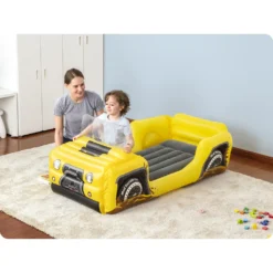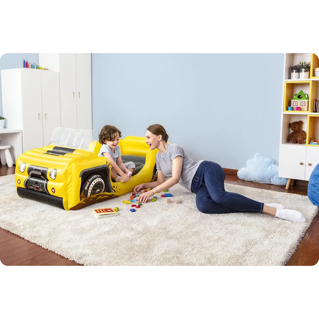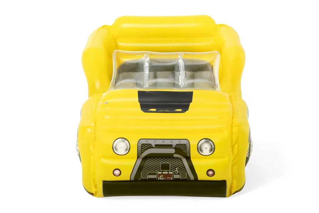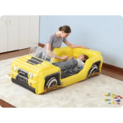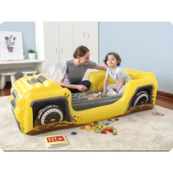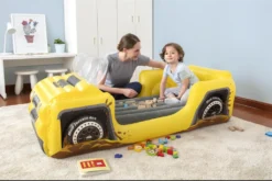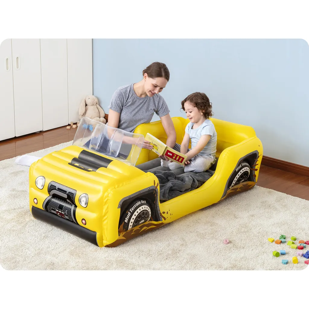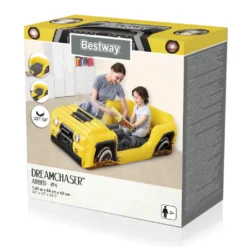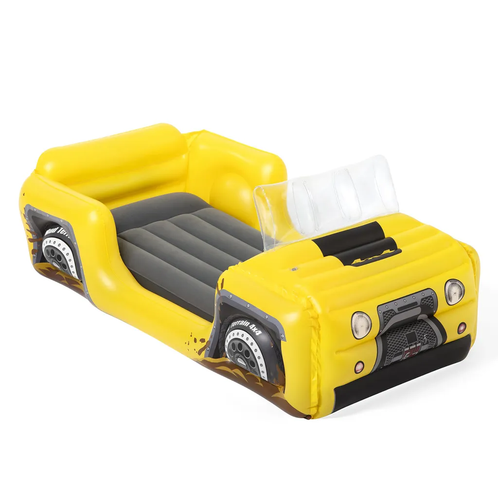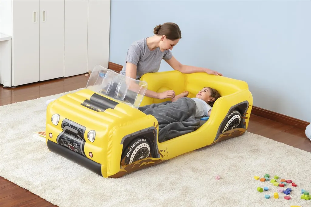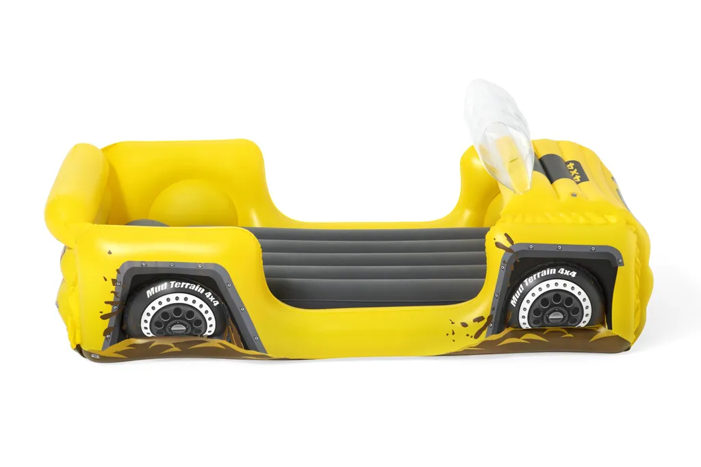 Mit dem DreamChaser-Luftbett 4×4 Off-Roader von Bestway® düsen Kinder mit Fahrtwind ins Traumland! Das lustige Geländefahrzeug macht das Schlafengehen für Ihre Kleinen vergnüglich und aufregend. Dank der angenehm beflockten Oberfläche fühlen sich Kinder überall zuhause und das Heck des Fahrzeugs kann auch zum Anlehnen dienen. Die Vertiefung des Luftbetts verleiht dem Luftbett die gebührende Sicherheit. Dadurch sind die Kinder gut aufgehoben und können während des Schlafens nicht herunterfallen. Die Luftmatratze kann auch herausgenommen und separat verwendet werden. Im DreamChaser-Luftbett 4×4 Off-Roader von Bestway® haben Kinder Spaß und einen wunderbaren Schlaf!
