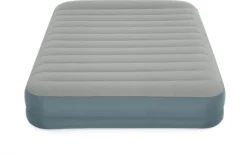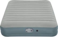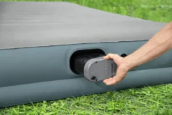 Das AlwayzAire™ ToughGuard™ Queen-Size-Luftbett mit akkubetriebener Pumpe ist die neuste Entwicklung in Sachen mobiler Schlaflösungen für den Innen- und Außenbereich. AlwayzAire™ Dualpumpe:Die integrierte Dualpumpe mit AlwayzAire™-Technologie bietet Ihnen gleich zwei verschiedene Pumpen. Die eine bläst das Bett bis zum optimalen Druck auf, die andere verfügt über eingebaute Sensoren, die den Innendruck überwachen und einen etwaigen Luftverlust bei Bedarf flüsterleise während der Nacht ausgleichen.Abnehmbar und wiederaufladbar: Die innovative Pumpe lässt sich zum Aufladen im Auto oder im Haus abnehmen, damit Sie das Luftbett nicht noch zusätzlich bewegen müssen. Dadurch eignet es sich perfekt für Ihren nächsten Camping-Trip und jedes andere Abenteuer im Freien. Die leistungsstarke Pumpe bläst das Bett in nur drei Minuten auf, ohne sie umständlich an eine Steckdose anschließen zu müssen, und entleert das Bett am nächsten Morgen im Handumdrehen wieder.Stabile Konstruktion:Das Luftbett besteht aus Tough Guard™ – einer besonderen Verbindung aus dicht gewebtem, strapazierfähigem Material, das Stabilität, Langlebigkeit und Komfort bietet. Das Material sorgt nicht nur eine bequeme Schlaffläche, es ist auch robuster als herkömmliches PVC und das bei zehn Prozent weniger Gewicht. Tough Guard™ ist 75 Prozent beständiger gegen Löcher und 150 Prozent reißfester. Dank des Textilgewebes wird das Bett in der Nacht weder zu warm noch zu kalt, was bei gewöhnlichen Luftbetten aus PVC an der Tagesordnung ist. Darüber hinaus bietet das Bett ein erhöhtes, integriertes Kissen und ein Schnellventil, um es gegebenenfalls manuell aufblasen zu können.