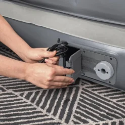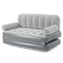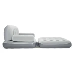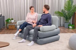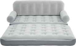 Dieses graue 3-in-1 Luftsofa von Bestway ist mit einer eingebauten Pumpe versehen und besitzt eine robuste Luftkammer-Konstruktion sowie eine angenehmen, beflockte Oberfläche. Es lässt sich in 3-4 Minuten aufblasen.