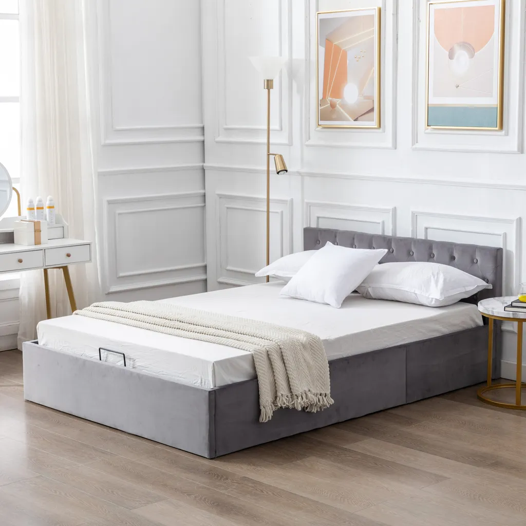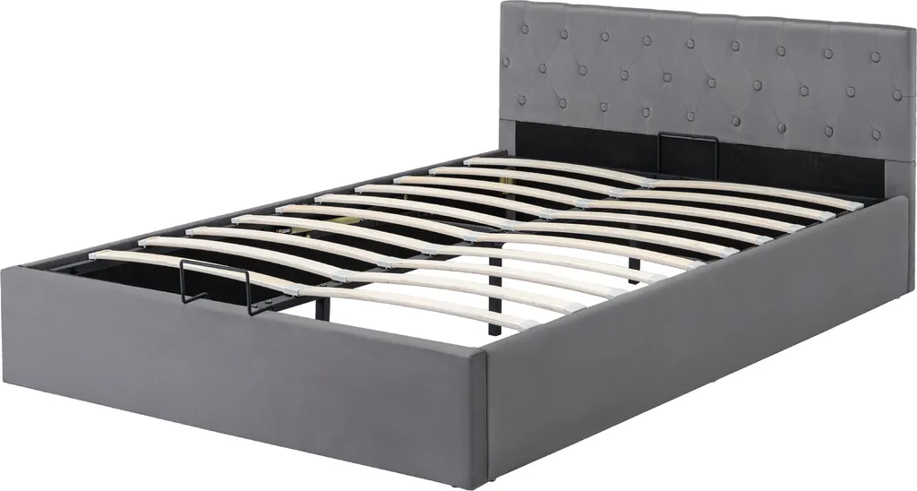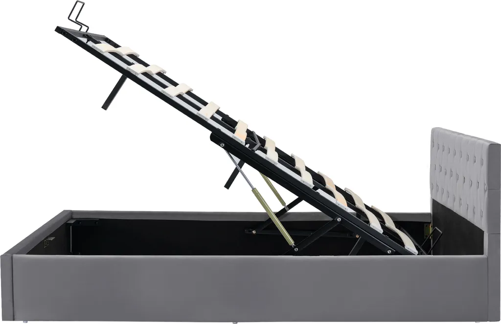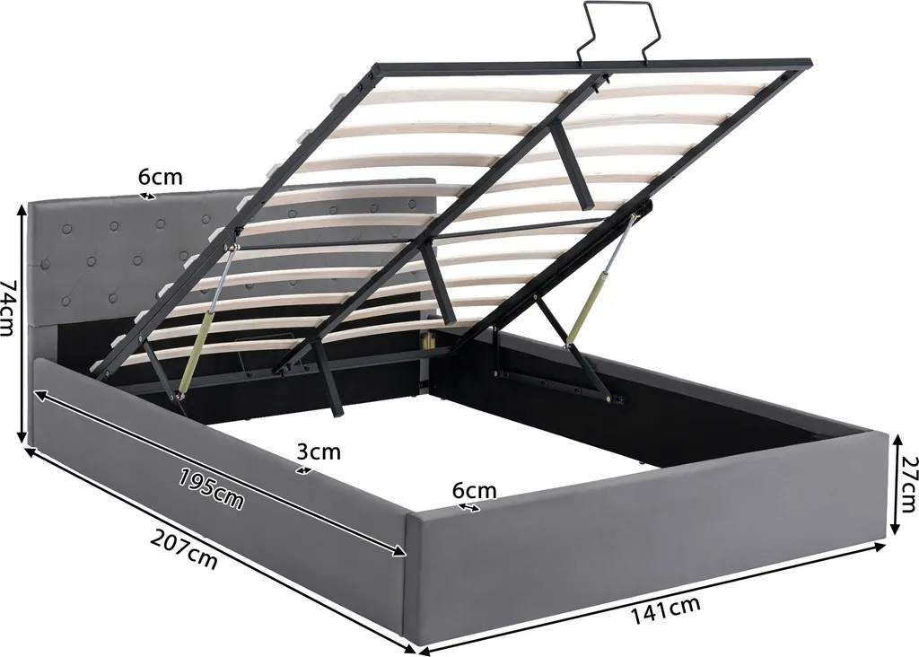 Großer Bettkasten unterhalb des Lattenrosts ist zu falten, dessen Stauraum ist genug, Sie können Decken, Kissen, Bettwäsche und so an darin legen , Lattenrost ist durch Hubzylinder leicht zu falten.