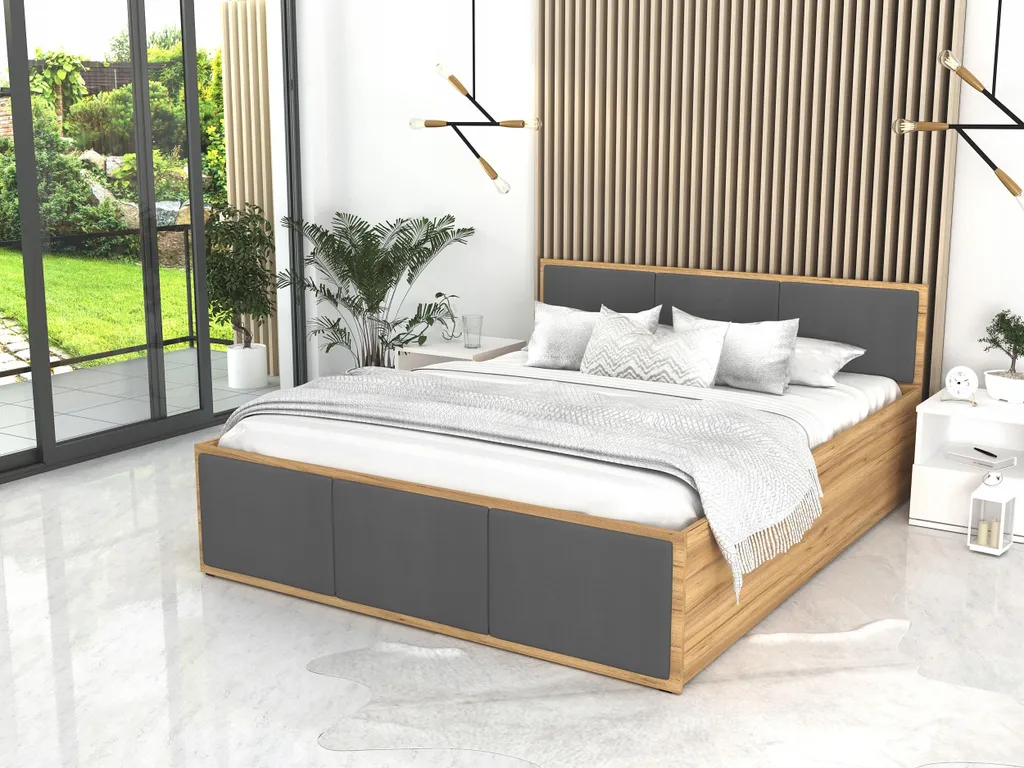 Fotogallerie Produktbeschreibung Bett mit Lattenrost Jugendbett Doppelbett eiche-grau