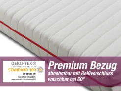 Der leistungsfähige Kaltschaum ist offen-porig, vergleichbar mit einem Naturschwamm. Er fördert damit einen optimalen Feuchtigkeitstransport und eine hohe Luftdurchlässigkeit – was Schweißbildung und Milbenbefall entgegenwirkt. Der hoch atmungsaktive klassik V2 Doppeltuch-Bezug (100% Polyester mit 200g Klima-Watte untersteppt) ist für Allergiker geeignet, strapazierfähig und mit einem reißfesten Reißverschluss ausgestattet und somit leicht abnehmbar.