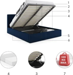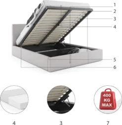 Das HILTON-Bett bietet Ihnen besonderen Komfort während des Schlafes. Hergestellt aus hochwertigem Laminat ist es stabil, und die Verbindungsschrauben mit hoher Druckfestigkeit erhöhen seine Festigkeit. Es ist leicht zu reinigen und bietet somit Komfort für den täglichen Gebrauch. Der obere Teil ist angehoben und verbirgt einen funktionalen Behälter, der ideal für die Aufbewahrung von Bettwäsche ist. HILTON ist ein Bett, das die ideale Lösung ist, wenn Sie sich auf einen erholsamen und angenehmen Schlaf verlassen.