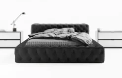 Das Boxspringbett Neria Lux ist mit zwei Hauptmatratzen ausgestattet, die auf einem System aus Taschenfedern und T30-Schaum basieren, sowie einem Topper aus hochelastischem Schaum mit einer Dicke von 5 cm. Zwei geräumige Bettkästen, die von der Seite geöffnet werden, sind ein weiterer Vorteil.