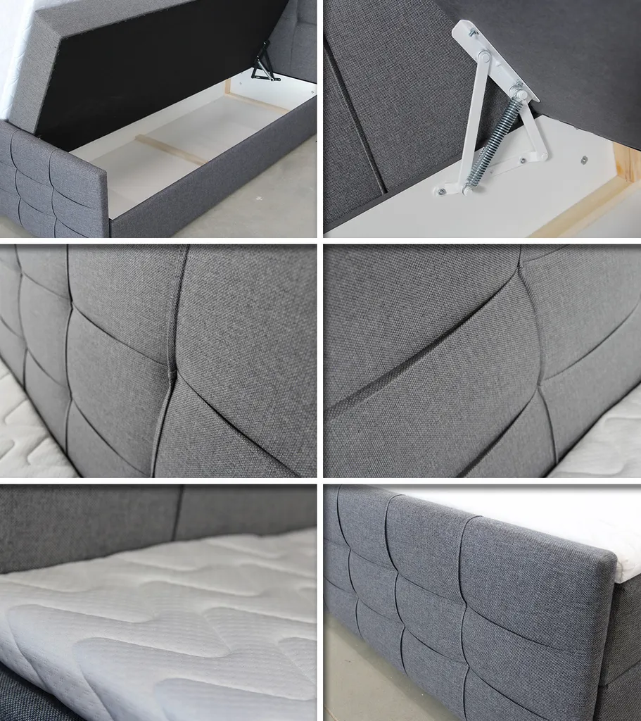 - Am unteren Teil – zwei Bettkasten für die Bettwäsche: Bett im Standard mit zwei Bettkästen für die Bettwäsche auf beiden Seiten des Bettes.