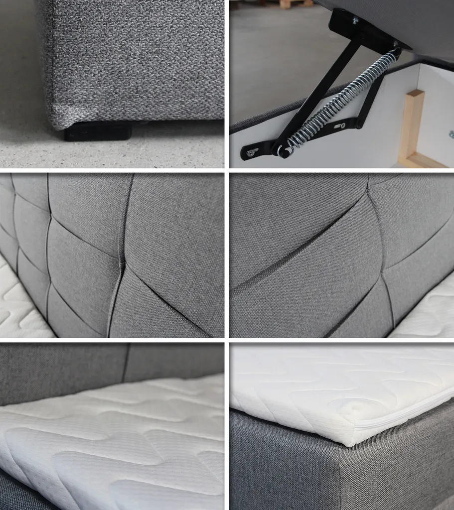 - Hebeautomatik – Federmechanismus hebt die zweite Schicht über dem Bettkasten an