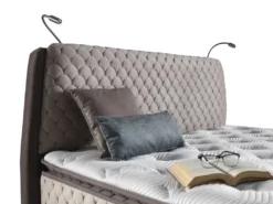 Borjen Bambi Yatak Boxspringbett mit Bettkasten Taschenfederkern-Matratze mit Topper mit Memoryeffekt und Kopfteil, Kopfteil mit LED, Doppelbett, Hotelbett, Ehebett, in Taupe Stoff