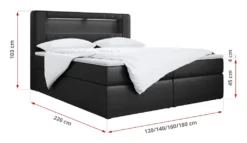 Das Boxspringbett mit mehreren Aufbewahrungsmöglichkeiten ist aus stabilen und extrem langlebigen Materialien gefertigt und wird standardmäßig mit einem doppelten Aufbewahrungskasten und einer PREMIUM-Matratze geliefert.