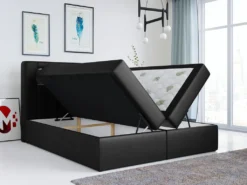 Das Boxspringbett mit mehreren Aufbewahrungsmöglichkeiten ist aus stabilen und extrem langlebigen Materialien gefertigt und wird standardmäßig mit einem doppelten Aufbewahrungskasten und einer PREMIUM-Matratze geliefert.