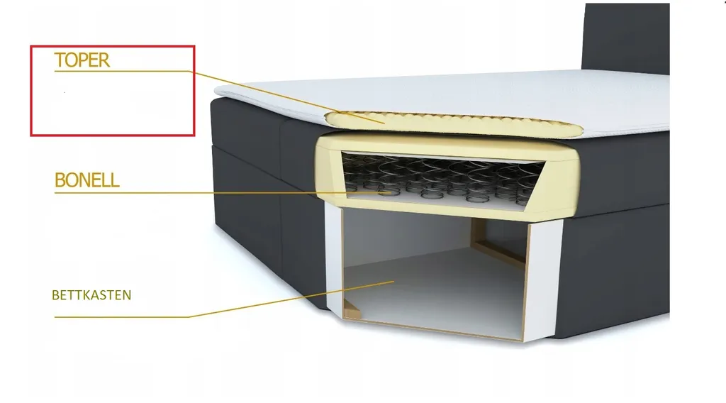 Boxspringbett mit hochwertigen Bonellfederkernmatratzen und bequemem Topper aus Kaltschaum 3 cm bieten eine hervorragende Punktelastizität und ein Höchstmaß an Komfort