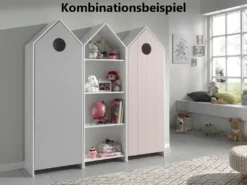 Der praktischer Schrank aus dem Programm CASAMI, ist eine ideale Ergänzung und passt sowohl in das Kinderzimmer, die Diele oder in den Wohnbereich. Er hat die dekorative Optik eines Strandhaus-Schrankes. Die Innenausstattung besteht aus drei fest montierten Böden. Die vier Fächer bieten viel Platz für Bekleidung oder Wäsche, die Fachinnenmaße sind ca.: B: 54 x H: 38 x T: 35 cm. Die Bodenfreiheit beträgt ca. 7 cm. Der Korpus ist aus hochwertigem MDF Holzwerkstoff und ist Weiß lackiert. Die Front, ebenfalls aus MDF, hat senkrecht verlaufende Rillenprofile und ist Pink lackiert. Durch das Griffloch (ca. 15 cm Durchmesser) ist die Tür einfach zu öffnen. Die Rückwand ist in WeißNachbildung beschichtet. Die Deko gehört nicht zum Lieferumfang. Eine Wandbefestigung ist erforderlich.