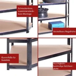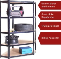 - STABIL & ROBUST: Jedes der Schwerlastregale ist streng getestet und stabil genug um 175kg pro Regal (875kg Gesamtlast!) zu tragen. Außerdem verfügt es über rutschfeste Gummifüße für optimale Stabilität.