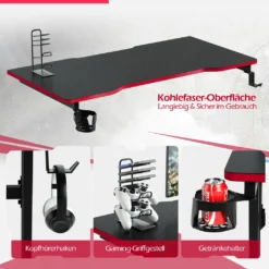 Durch die zusätzlichen Details wie die Halterungen für Kopfhörer, Gamepad und Getränke hat der Tisch eine hohe Praktikabilität.