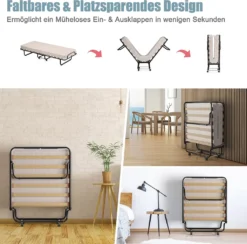 - Leicht Bewegbar und vielseitige Nutzung: 4 360° drehbare Rollen lassen Sie das Klappbett einfach zu jeder gewünschten Position bewegen.