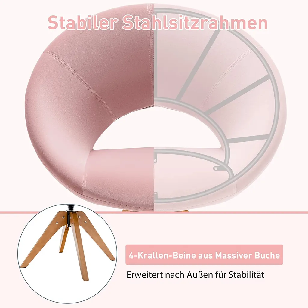 Er ist mit elastischem Schaumstoff gepolstert, wodurch Sie sich wunderbar entspannen können. Zum Komfort tragen auch der weiche Bezug, große Sitz und die breite Rückenlehne bei, die zudem ergonomisch ist. Der Stahlrahmen und die vier festen Holzbeine ermöglichen einen sicheren und stabilen Stand. Außerdem kann die Sitzfläche durch das Edelstahl-Schwenksystem um 360° gedreht werden. Die rutschfesten Untersetzer schützen Ihren Boden. Der Stuhl eignet sich auch als Frisierstuhl oder für Esszimmer.