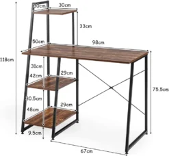 Dieser Computertisch ist perfekt für das Homeoffice, dessen schlichter, eleganter Stil gut zu Ihrer Einrichtung passen wird. Seine breite Tischplatte ermöglicht eine ordentliche Umgebung, so können Sie sich auf das Arbeiten, Spielen, Lesen, usw. konzentrieren. Dank der 4-stufigen offenen Ablageflächen ist alles in Reichweite. Auf diese Weise müssen Sie sich keine Sorgen machen, lange suchenzu müssen. Es ist auch eine gute Idee, Ihr Lieblingsornament oder Ihre Pflanzen auf dem offenen Regal auszustellen. Weitere Merkmale wie die robuste Metallstruktur, die verstellbaren Fußauflagen und die leicht zu reinigende Oberfläche warten darauf, von Ihnen entdeckt zu werden.