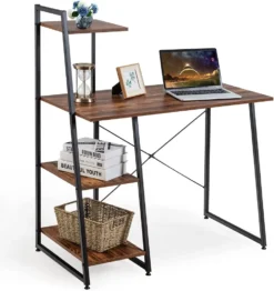 Dieser Computertisch ist perfekt für das Homeoffice, dessen schlichter, eleganter Stil gut zu Ihrer Einrichtung passen wird. Seine breite Tischplatte ermöglicht eine ordentliche Umgebung, so können Sie sich auf das Arbeiten, Spielen, Lesen, usw. konzentrieren. Dank der 4-stufigen offenen Ablageflächen ist alles in Reichweite. Auf diese Weise müssen Sie sich keine Sorgen machen, lange suchenzu müssen. Es ist auch eine gute Idee, Ihr Lieblingsornament oder Ihre Pflanzen auf dem offenen Regal auszustellen. Weitere Merkmale wie die robuste Metallstruktur, die verstellbaren Fußauflagen und die leicht zu reinigende Oberfläche warten darauf, von Ihnen entdeckt zu werden.
