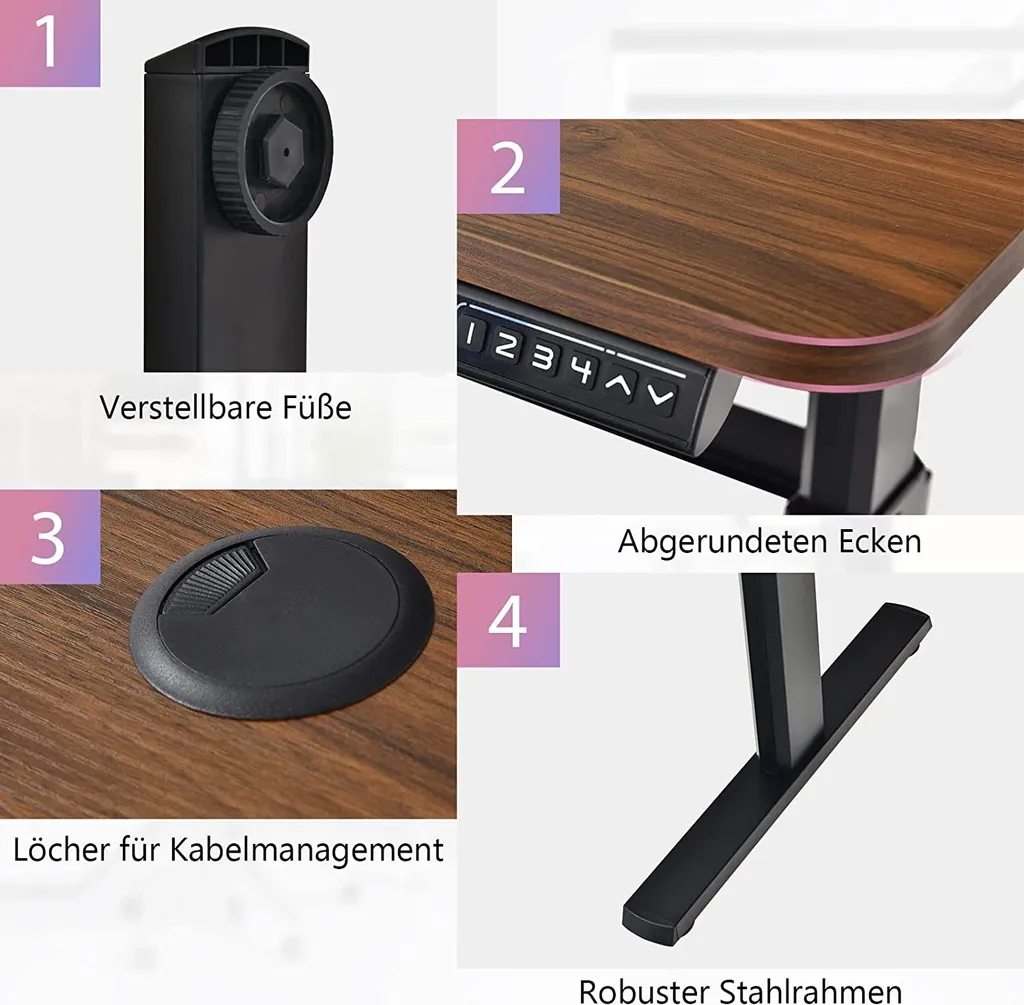 Dieser elektrische Schreibtisch ist eine moderne und funktionale Ergänzung. Er kann als Computertisch, Schreibtisch oder Bürotisch im Wohnzimmer, Arbeitszimmer oder Büro verwendet werden. Das mitgelieferte Zubehör und die detaillierte Anleitung vereinfachen den Aufbau.