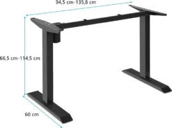 Die Breite des Gestells lässt sich von 94,5cm-135,8cm einstellen, um zu einer Vielzahl von Schreibtischen zu passen. Diese können 100 cm bis 170 cm lang und 61 cm bis 70 cm breit sein.