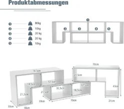 Aus 1,6 cm dickem Holzwerkstoff gefertigt, kann das moderne TV-Regal ein beträchtliches Gewicht tragen und eine lange Lebensdauer bieten. Die Tischplatte kann bis zu 80 kg tragen, während jede Ablage 20 kg trägt. Darüber hinaus sind die 3 Regalböden mit rutschfesten Pads ausgestattet, die für zusätzliche Stabilität sorgen und Kratzer verhindern.