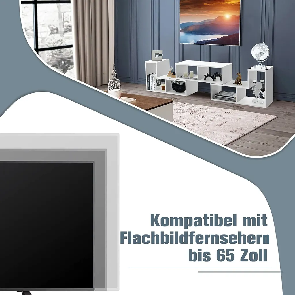 Kann als TV-Konsolenständer, Aufbewahrungseinheit oder Präsentationsregal verwendet werden