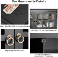 Dank der Magnetschlösser lassen sich die Türen der Kommode leicht und leise öffnen und schließen. Die Türen selbst bestehen aus äußerst robustem Hartglas.