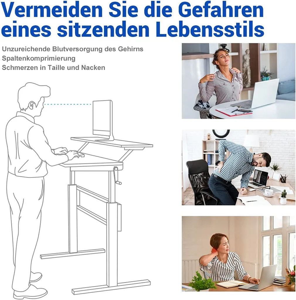 Der höhenverstellbare Tisch ermutigt Sie dazu, bessere Gewohnheiten zu pflegen und zwischen dem Sitzen und Stehen zu wechseln. Er wird Ihr Rückgrat beschützen, Blutzirkulation anregen, Rücken- und Nackenschmerzen verringern und somit Ihre Konzentration und Effizienz beim Arbeiten erhöhen.